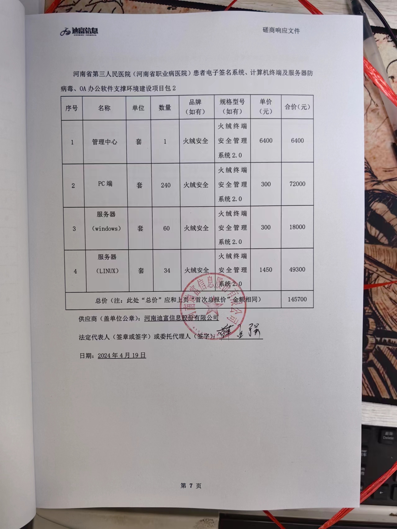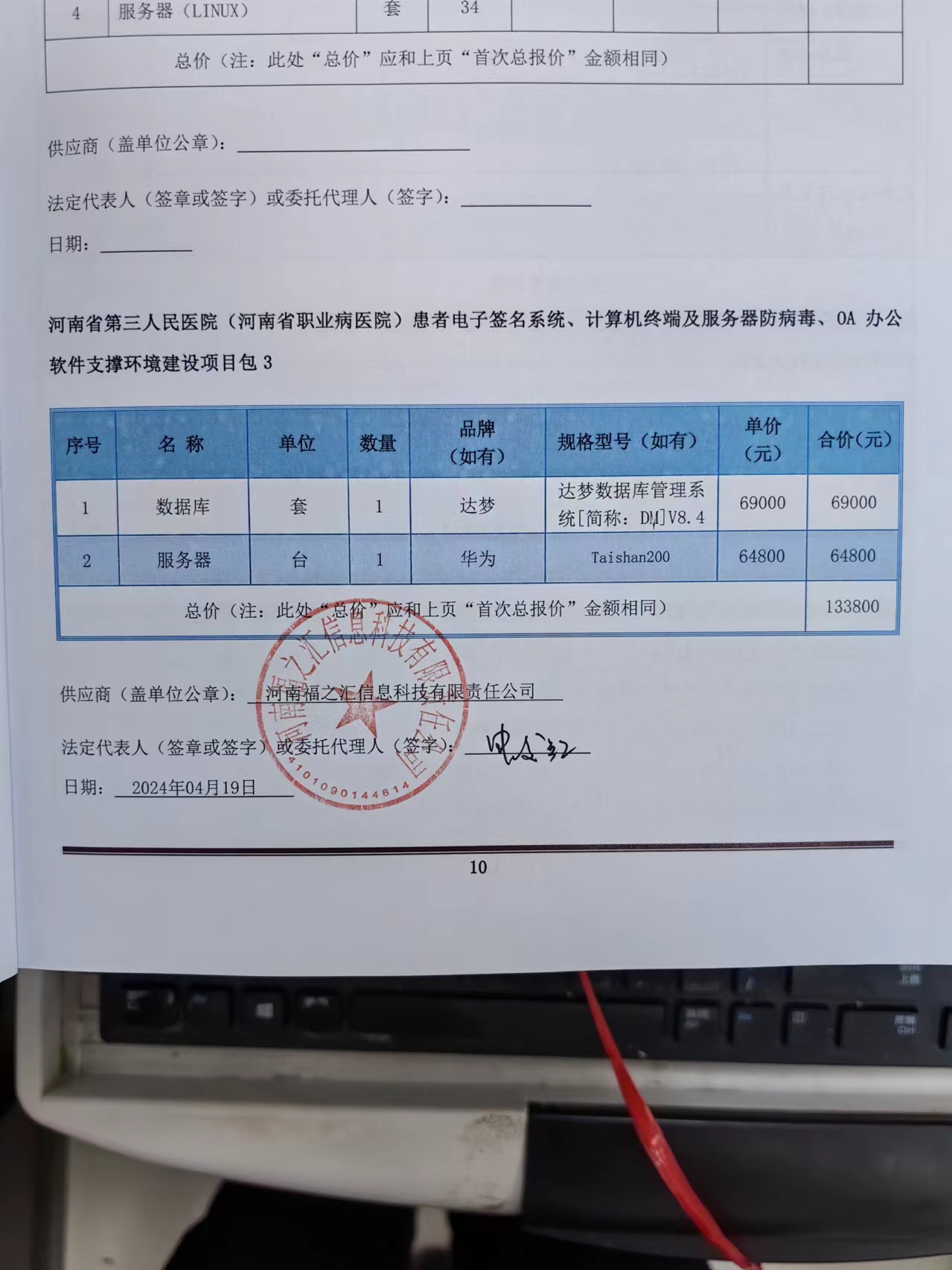 2、采購(gòu)項(xiàng)目名稱:河南省第三人民醫(yī)院(河南省職業(yè)病醫(yī)院)患者電子簽名系統(tǒng)、計(jì)算機(jī)終端及服務(wù)器防病毒、OA辦公軟件支撐環(huán)境建設(shè)項(xiàng)目
