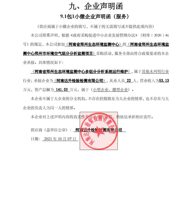 豫政采(2)20211585-1 | 河南省鄭州生態(tài)環(huán)境監(jiān)測中心鄭州市環(huán)境空氣組分分析監(jiān)測項目包1 | 河南達升檢驗檢測有限公司 | 鄭州市金水區(qū)青年路145號6號樓9層904號 | 2379000 | 金額 | 元 | |||||