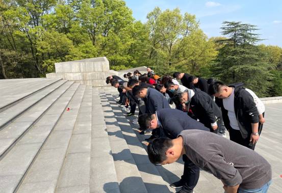 站在革命英雄紀(jì)念碑前,全體人員整齊列隊(duì),莊嚴(yán)肅穆,向革命烈士鞠躬默哀。