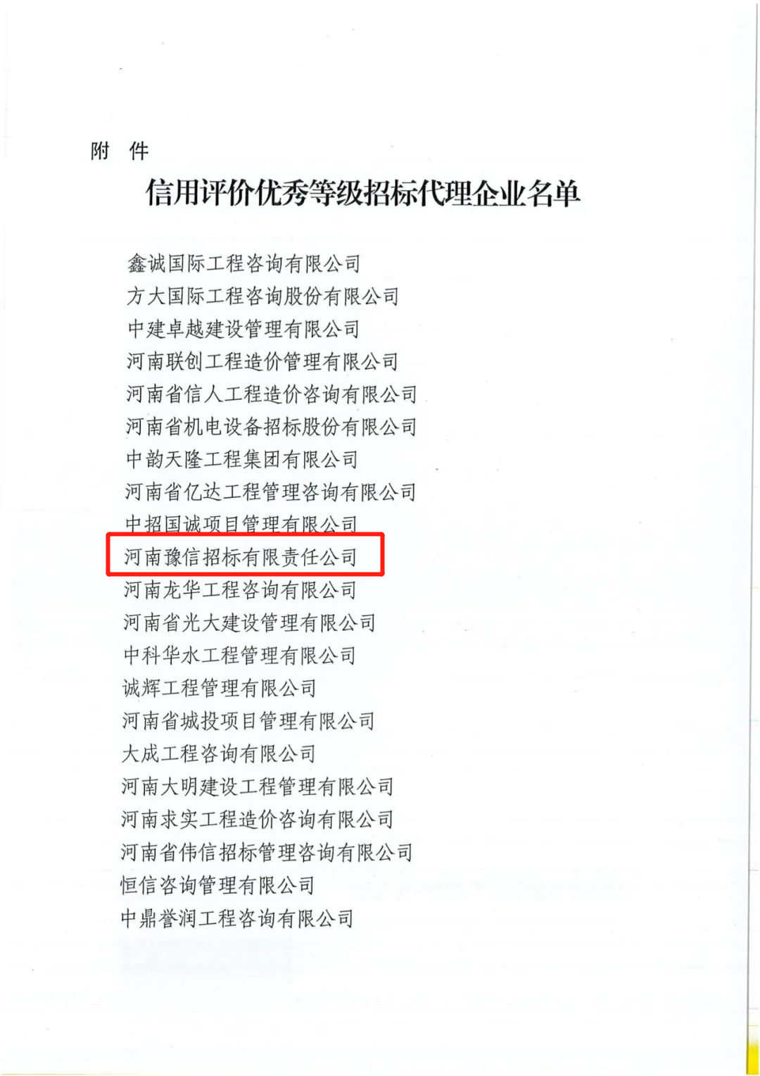 熱烈祝賀我公司獲得河南省住建廳評(píng)定“全省信用評(píng)價(jià)優(yōu)秀等級(jí)招標(biāo)代理“企業(yè)稱號(hào)。
