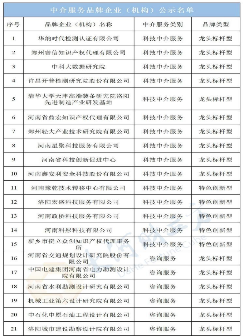 5月30日,河南省發(fā)展改革委公示了100家省級中介服務(wù)品牌企業(yè)(機(jī)構(gòu))名單。