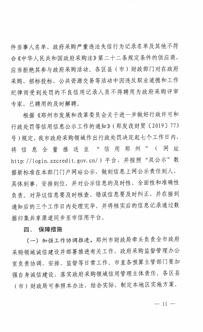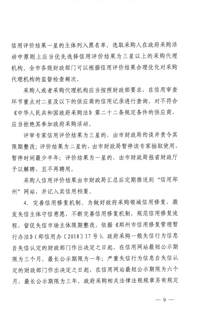 鄭州市財(cái)政局 關(guān)于印發(fā)鄭州市政府采購領(lǐng)域信用體系建設(shè)工作實(shí)施方案的通知