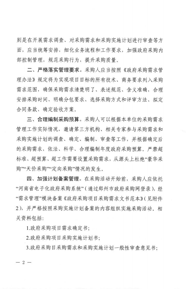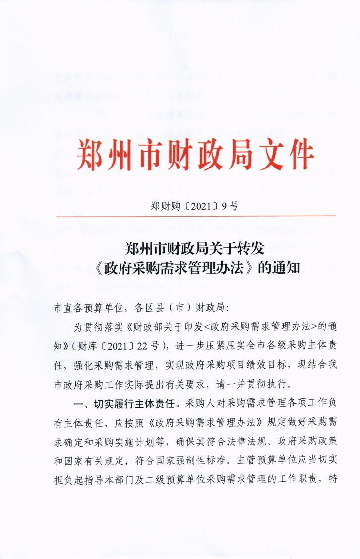 鄭州市財政局 關于轉發(fā)《政府采購需求管理辦法》的通知