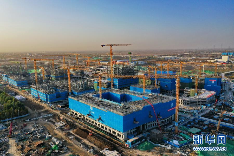 這是11月6日拍攝的河北雄安新區(qū)商務(wù)服務(wù)中心建設(shè)現(xiàn)場(chǎng)(無人機(jī)照片)。新華社記者 牟宇 攝