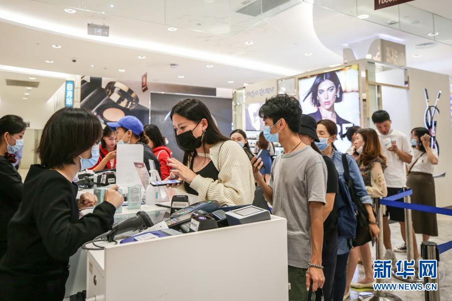 10月27日,消費(fèi)者在海南省??谑腥赵聫V場(chǎng)免稅店選購(gòu)商品。新華社記者 張麗蕓攝