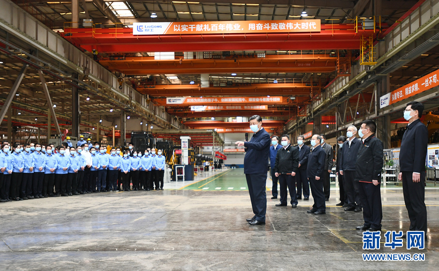 當天下午,習近平來到柳州市考察調研。在廣西柳工集團有限公司,習近平先后走進公司展廳、研發(fā)實驗中心、挖掘機裝配廠等,聽取企業(yè)發(fā)展情況介紹,察看主要產(chǎn)品展示,同企業(yè)職工和技術研發(fā)人員親切交談。習近平強調,制造業(yè)高質量發(fā)展是我國經(jīng)濟高質量發(fā)展的重中之重,建設社會主義現(xiàn)代化強國、發(fā)展壯大實體經(jīng)濟,都離不開制造業(yè),要在推動產(chǎn)業(yè)優(yōu)化升級上繼續(xù)下功夫。只有創(chuàng)新才能自強、才能爭先,要堅定不移走自主創(chuàng)新道路,把創(chuàng)新發(fā)展主動權牢牢掌握在自己手中。要堅持黨對國有企業(yè)的全面領導,堅持加強黨的領導和完善公司治理相統(tǒng)一,在深化企業(yè)改革中搞好黨的建設,充分發(fā)揮黨組織在企業(yè)改革發(fā)展中的領導核心作用。