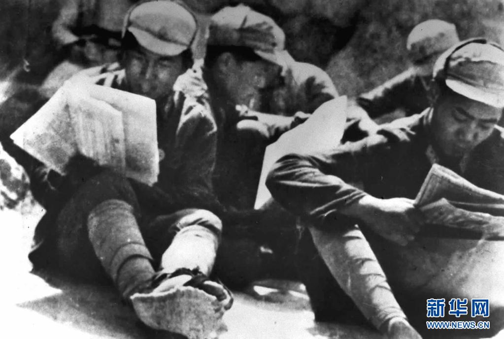 中國(guó)人民抗日軍政大學(xué)的學(xué)員在學(xué)習(xí)整風(fēng)文件(資料照片)。新華社發(fā)