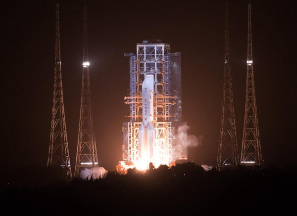2020年11月24日4時(shí)30分,中國(guó)文昌航天發(fā)射場(chǎng)。長(zhǎng)征五號(hào)遙五運(yùn)載火箭尾焰噴薄而出,閃爍著多彩的光芒映透整個(gè)夜空。山坡上、海岸邊,人們歡呼、慶祝,目送長(zhǎng)征五號(hào)全力托舉嫦娥五號(hào)向著月球飛馳而去。