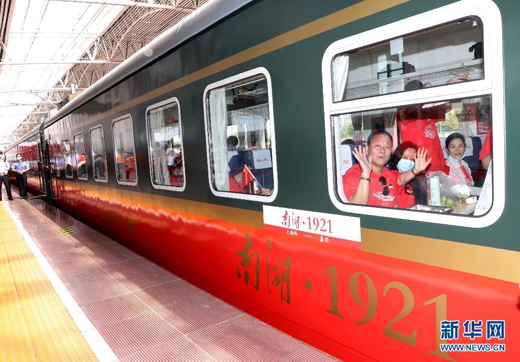 2021年6月25日,乘坐Y701次“上海至嘉興紅色旅游列車”的旅客在鐵路上海西站準(zhǔn)備出發(fā)。這是一趟紅色教育主題列車,連接起上海中共一大會址與嘉興南湖。新華社記者 陳飛 攝