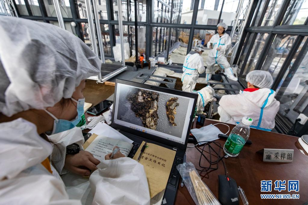 2021年3月10日,在三星堆遺址考古發(fā)掘現(xiàn)場,考古人員利用電腦現(xiàn)場查看新發(fā)現(xiàn)的象牙雕,并進(jìn)行記錄。新華社記者 沈伯韓 攝