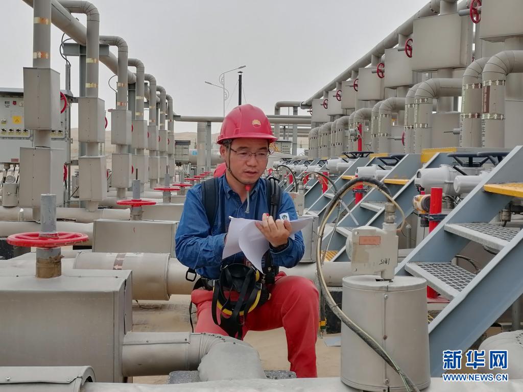 塔里木油田工作人員在讀取抽油機(jī)參數(shù)(2021年3月攝)。新華社發(fā)