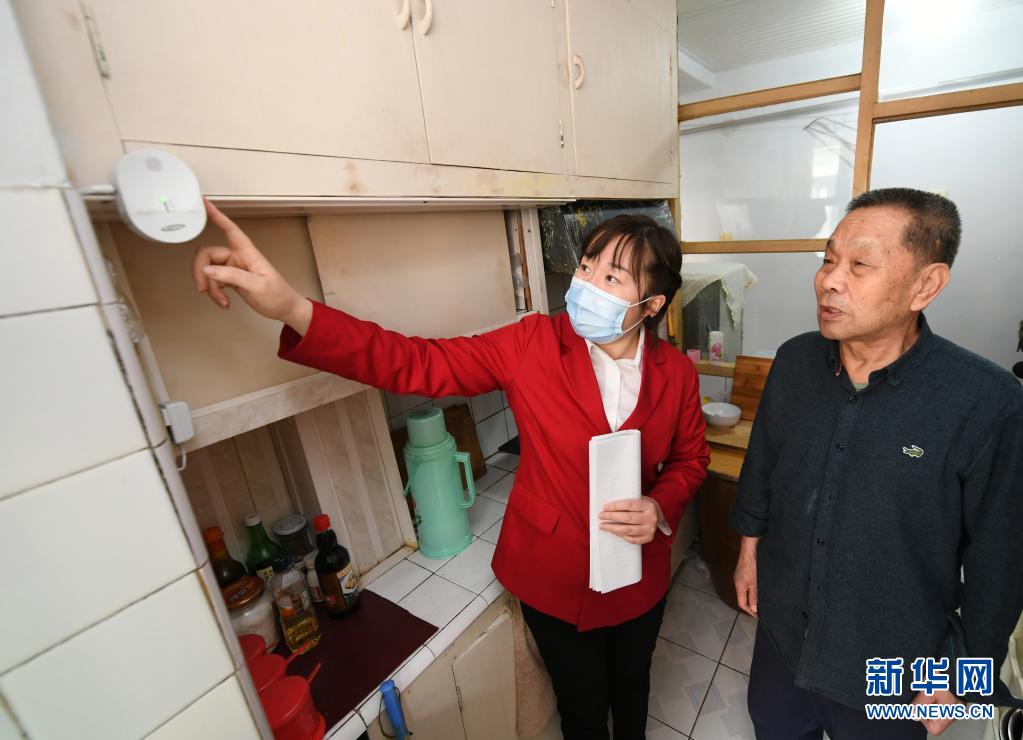 吉林省長春市長山花園社區(qū)黨委書記韓麗萍(左)到獨居老人家中檢查燃?xì)鈭缶O(shè)備(資料照片)。新華社發(fā)