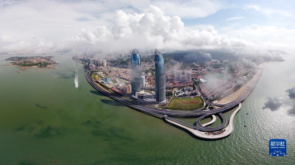 這是廈門(mén)演武大橋沿線及鼓浪嶼(拼接照片,2017年8月24日攝)。新華社記者 姜克紅 攝
