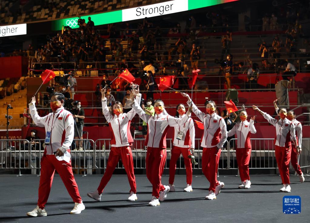 8月8日,第32屆夏季奧林匹克運(yùn)動(dòng)會閉幕式在日本東京舉行。這是中國體育代表團(tuán)成員進(jìn)入體育場。新華社記者 曹燦 攝
