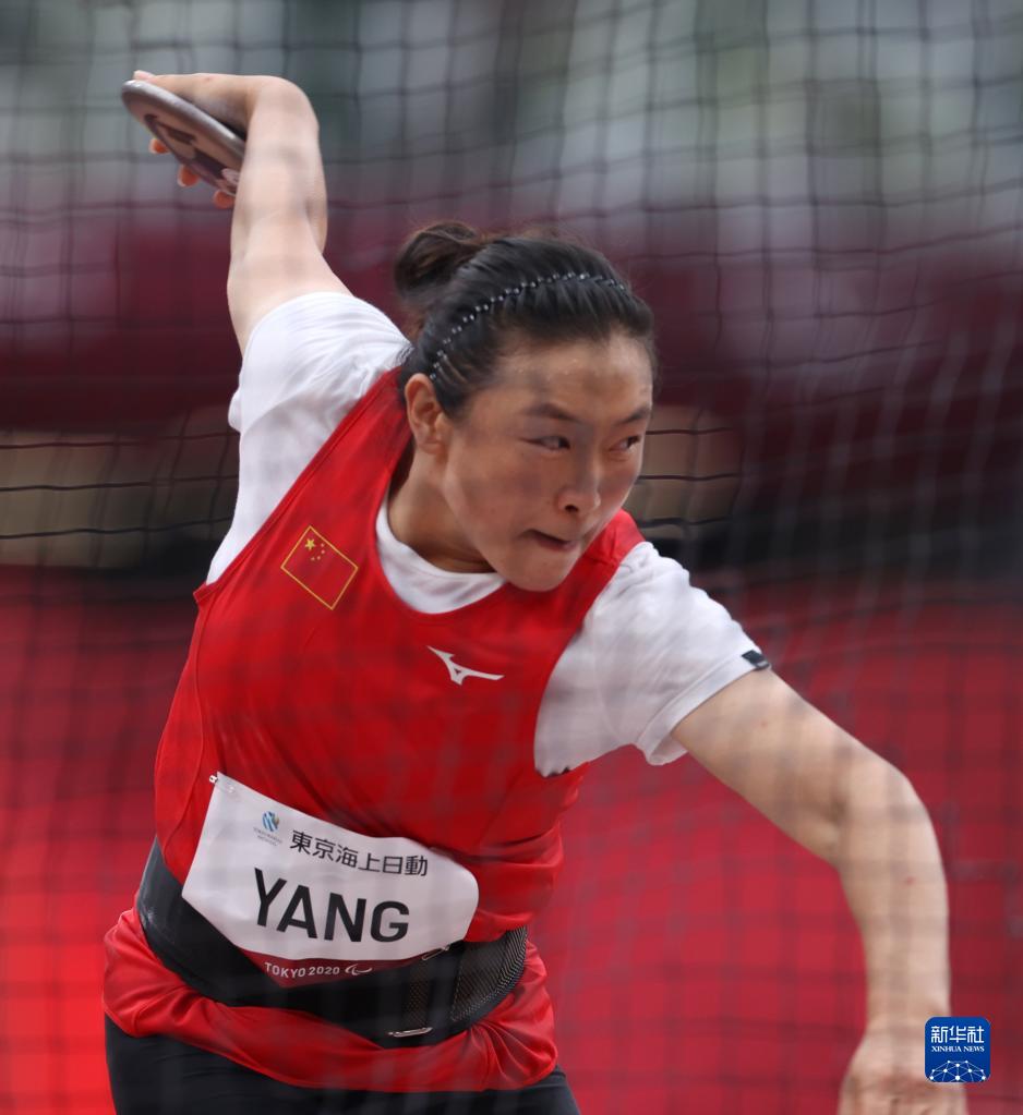 8月29日,中國選手楊月在東京殘奧會(huì)田徑女子鐵餅F64級決賽中。新華社記者 杜瀟逸 攝