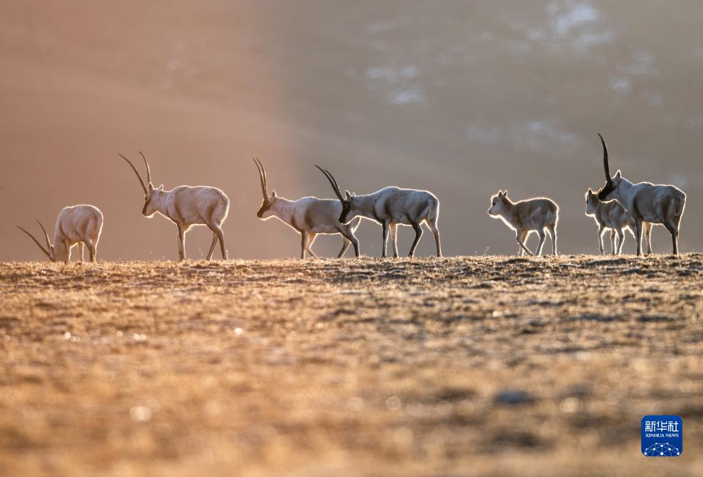 西藏羌塘自然保護區(qū)內的藏羚羊(2019年1月31日攝)。新華社記者 普布扎西 攝