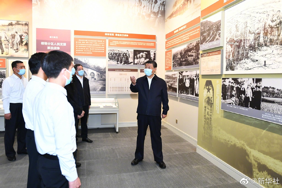 ? 習近平總書記14日在榆林市綏德縣考察調研。他先后來到中共綏德地委舊址、綏德實驗中學、綏德縣非物質文化遺產(chǎn)陳列館、張家砭鎮(zhèn)郝家橋村,圍繞弘揚黨的光榮傳統(tǒng)和優(yōu)良作風、促進學生全面發(fā)展與健康成長、推進傳統(tǒng)文化保護與傳承、全面推進鄉(xiāng)村振興等實地調研。(文字記者:張曉松、朱基釵;攝影記者:李學仁、謝環(huán)馳、燕雁)
