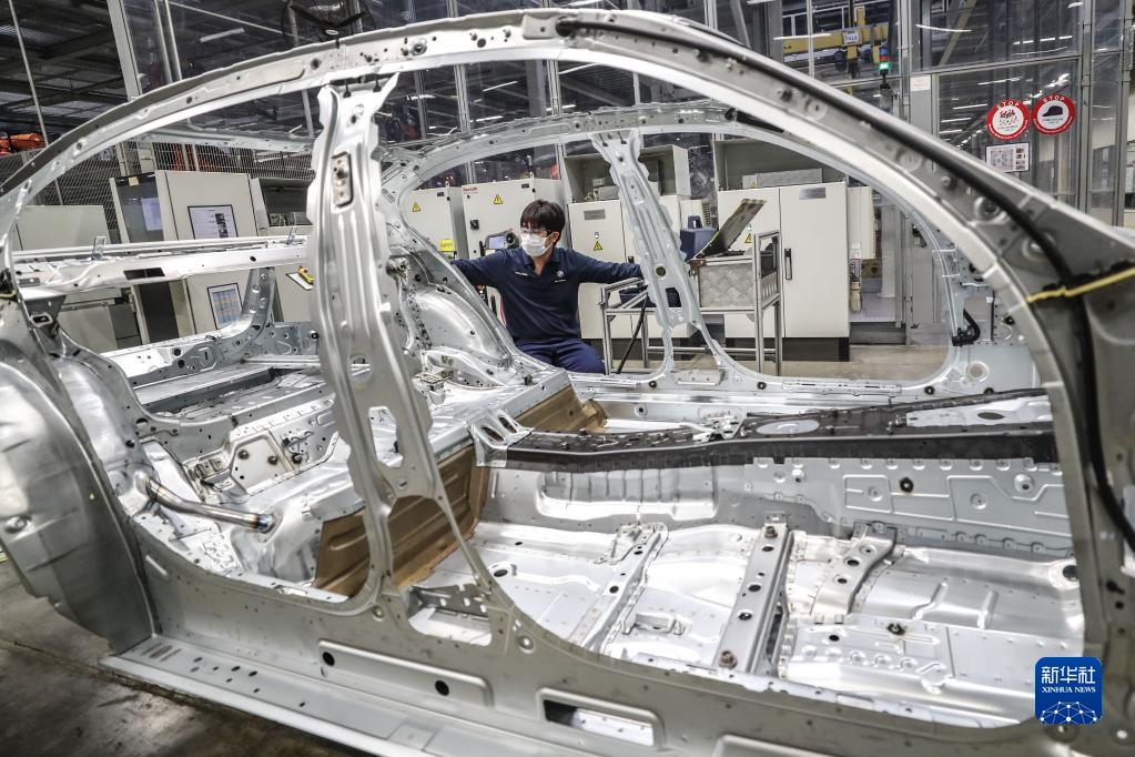 2020年2月17日,工人在華晨寶馬汽車有限公司鐵西工廠生產(chǎn)線上工作。新華社記者 潘昱龍 攝