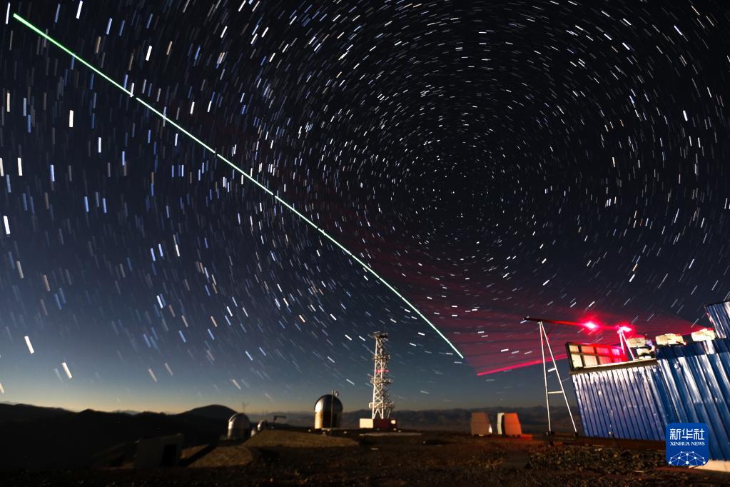 2016年12月9日,“墨子號”量子科學(xué)實驗衛(wèi)星與阿里量子隱形傳態(tài)實驗平臺建立天地鏈路(合成照片)。新華社記者 金立旺 攝