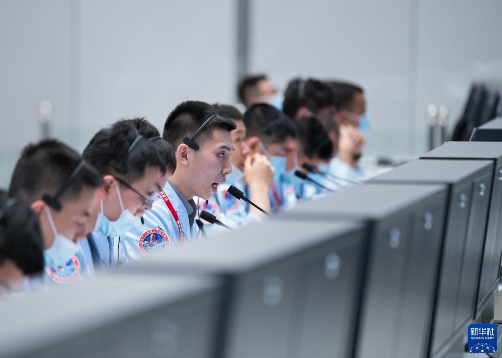 在北京航天飛行控制中心,科研人員在監(jiān)測神舟十二號載人飛船與天和核心艙自主快速交會對接情況(6月17日攝)。新華社記者 金立旺 攝