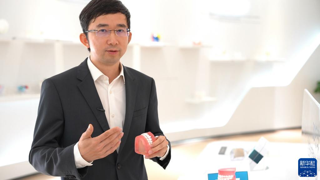 “80后”海歸袁玉宇介紹他創(chuàng)立的廣州邁普再生醫(yī)學(xué)科技有限公司研發(fā)的產(chǎn)品(2019年2月3日攝)。新華社記者 周自揚(yáng) 攝