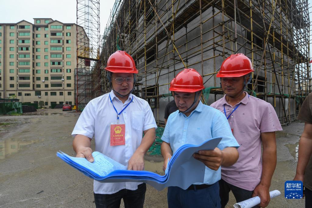 2021年6月2日,在浙江省湖州市吳興區(qū)東林鎮(zhèn)星火村,當(dāng)?shù)厝舜蟠淼揉l(xiāng)村議事會成員對星火村農(nóng)民新村建設(shè)項(xiàng)目的施工進(jìn)展情況進(jìn)行監(jiān)督檢查。新華社記者 徐昱 攝