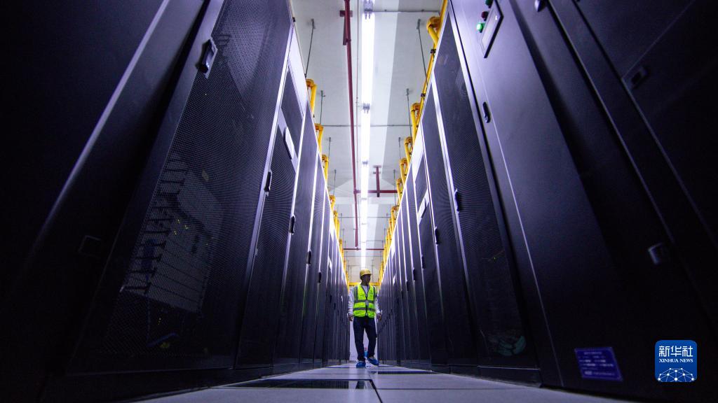 工作人員在中國移動貴州數(shù)據(jù)中心機(jī)房內(nèi)巡檢(5月24日攝)。新華社記者 歐東衢 攝