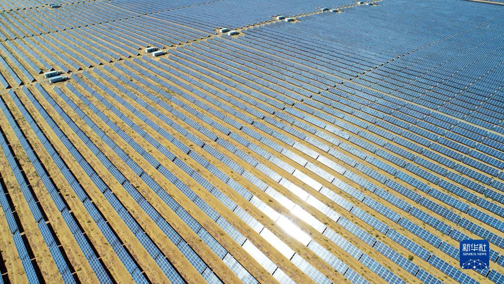 這是寧夏中衛(wèi)市沙漠光伏產(chǎn)業(yè)園光伏電站(2018年9月7日,無人機(jī)照片)。新華社記者 王鵬 攝