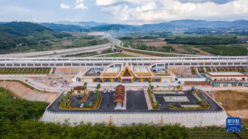 這是中老鐵路國內(nèi)段的玉(溪)磨(憨)鐵路野象谷車站一景(9月29日攝,無人機(jī)照片)。新華社記者 胡超 攝