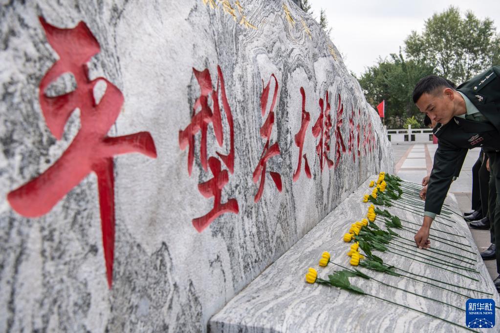 2020年9月25日,在位于山西省大同市靈丘縣的平型關(guān)大捷紀念館,工作人員向革命先烈獻花。新華社記者 楊晨光 攝