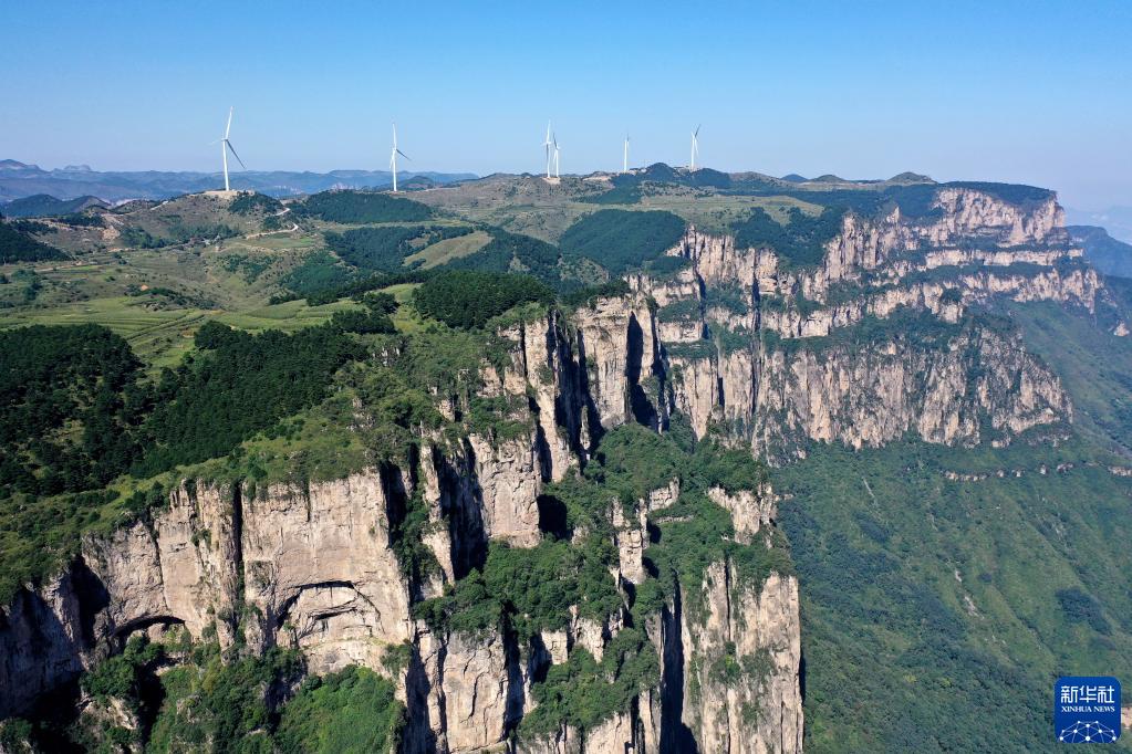 這是2021年9月8日在山西省平順縣玉峽關(guān)鎮(zhèn)拍攝的太行山風(fēng)光(無人機照片)。新華社記者 詹彥 攝