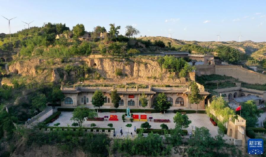 游人在陜西省榆林市米脂縣楊家溝革命舊址參觀(9月10日攝,無人機照片)。新華社記者 陶明 攝