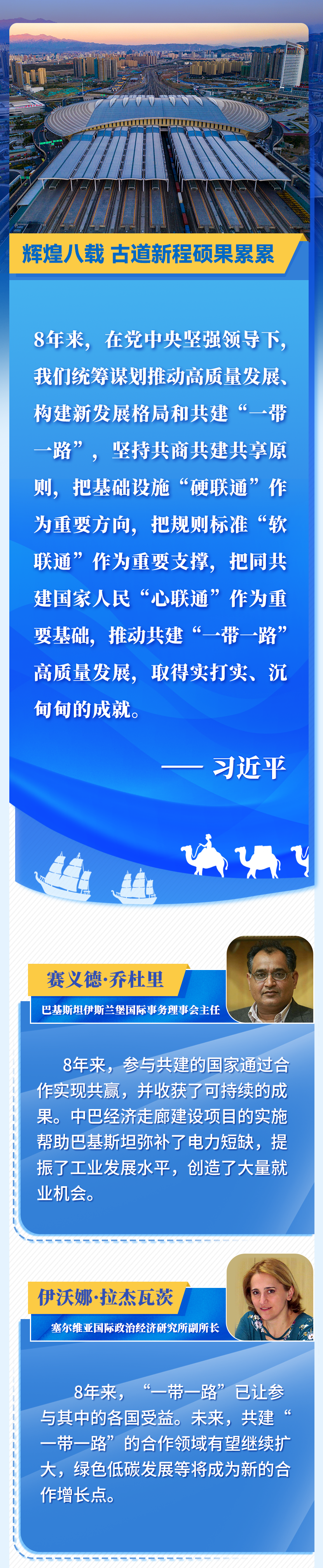 中共中央總書記、國家主席、中央軍委主席習(xí)近平19日在北京出席第三次“一帶一路”建設(shè)座談會并發(fā)表重要講話。多國人士和我海外項目人員表示,“一帶一路”倡議提出8年來取得實實在在成果,習(xí)近平主席的重要講話為繼續(xù)推動共建“一帶一路”高質(zhì)量發(fā)展擘畫藍圖、指明方向,期待共建“一帶一路”不斷取得新成效,更好造福各國人民。