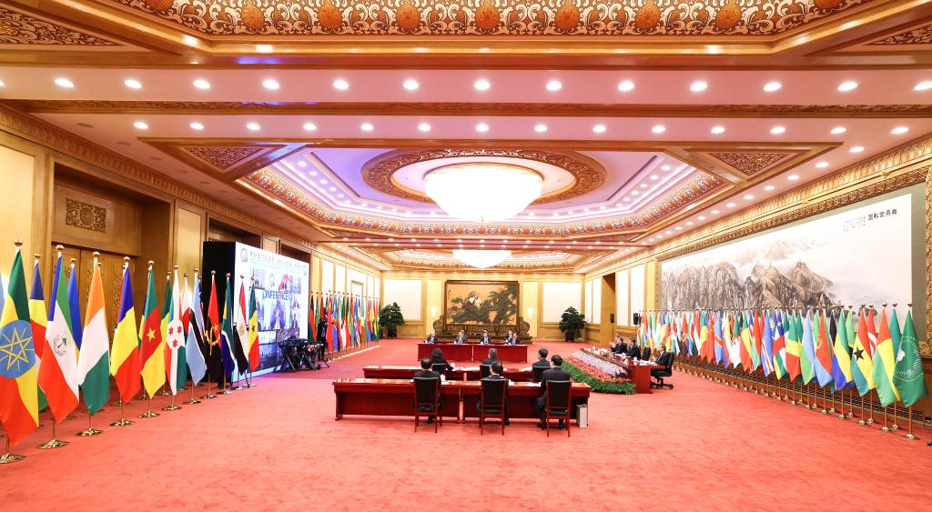 “志合者,不以山海為遠(yuǎn)”。29日晚,北京人民大會(huì)堂東大廳內(nèi),中國和53個(gè)非洲國家國旗以及非洲聯(lián)盟旗幟并排矗立、恢弘大氣,雖是“云端”相聚,但現(xiàn)場(chǎng)洋溢著濃濃情誼,昭示著中非歷久彌堅(jiān)的友好關(guān)系。