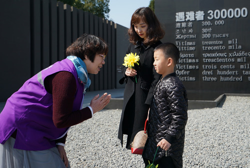 從2008年開始,來自美國、法國、韓國、日本等國的志愿者來到紀念館,用英語、法語、韓語、日語等向來自世界各地的參觀者講述南京大屠殺歷史,并在紀念館史學研究、文史資料翻譯、國際交流活動中發(fā)揮專長。