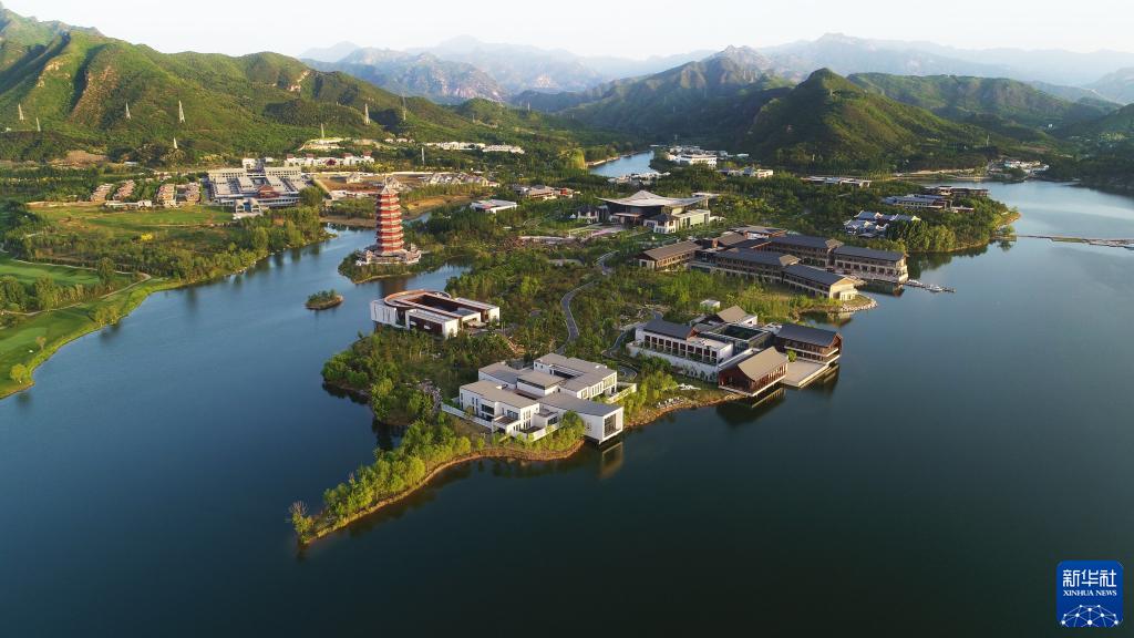 “一帶一路”國際合作高峰論壇于2017年5月14日至15日在北京舉行,懷柔雁棲湖國際會議中心是此次高峰論壇的主會場。這是雁棲湖(2017年5月6日攝,無人機照片)。新華社記者 李鑫 攝
