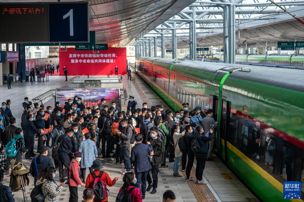 12月3日,乘客在中國昆明站準備搭乘中老鐵路首發(fā)列車。新華社記者 胡超 攝