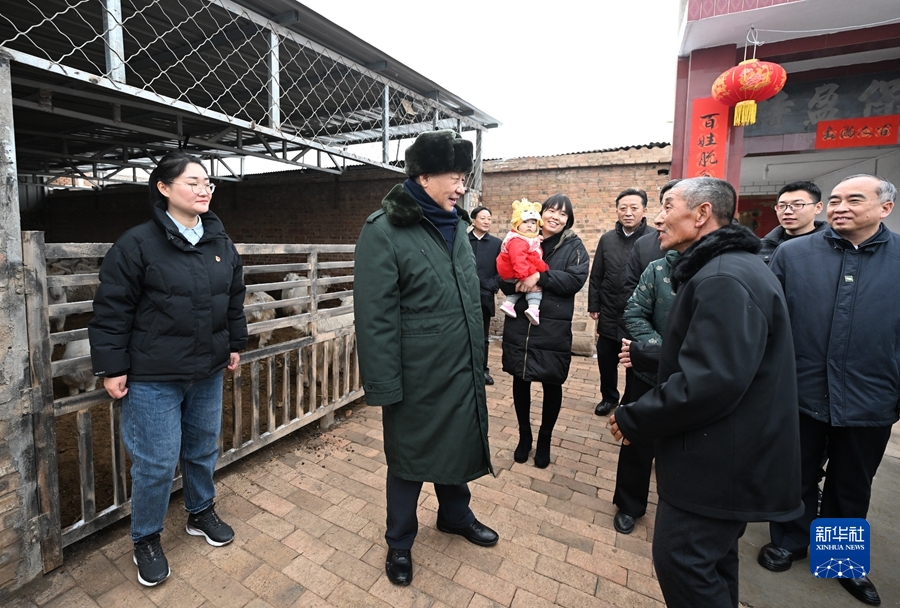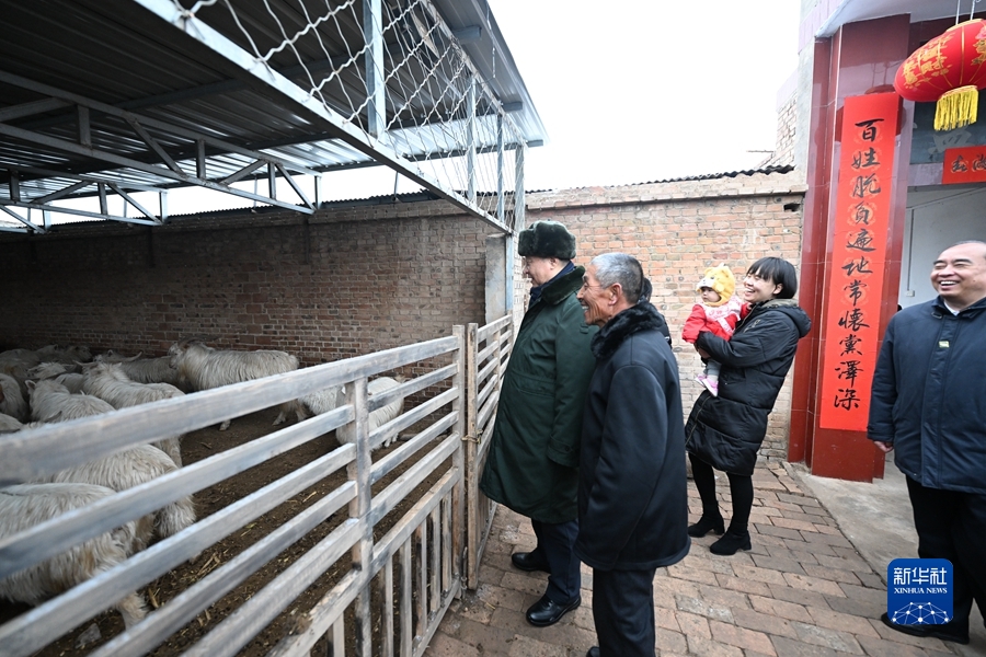 1月26日至27日,中共中央總書記、國(guó)家主席、中央軍委主席習(xí)近平來到山西,看望慰問基層干部群眾。這是26日下午,習(xí)近平在臨汾市汾西縣僧念鎮(zhèn)段村蔡文明家察看羊圈。新華社記者 李學(xué)仁 攝
