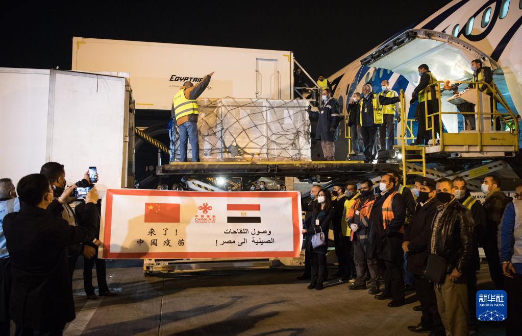 2021年2月23日,中國援助埃及的首批新冠疫苗抵達(dá)開羅國際機(jī)場(chǎng)。新華社記者 鄔惠我 攝