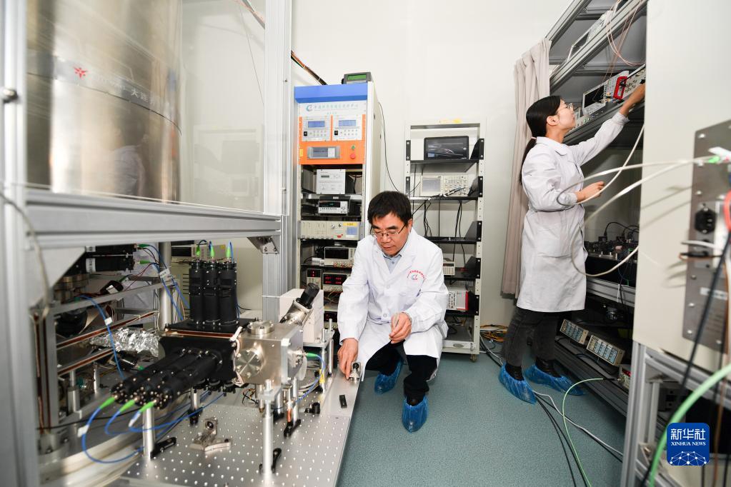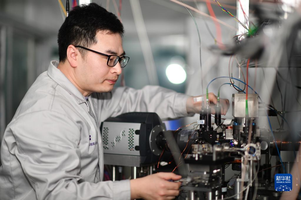 2月8日,科研人員在中國科學院國家授時中心空間鍶原子光鐘實驗室工作。新華社記者 張博文 攝