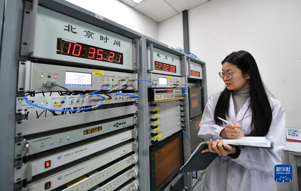 2月8日,科研人員在中國科學院國家授時中心時間頻率基準實驗室記錄數(shù)據(jù)。新華社記者 張博文 攝