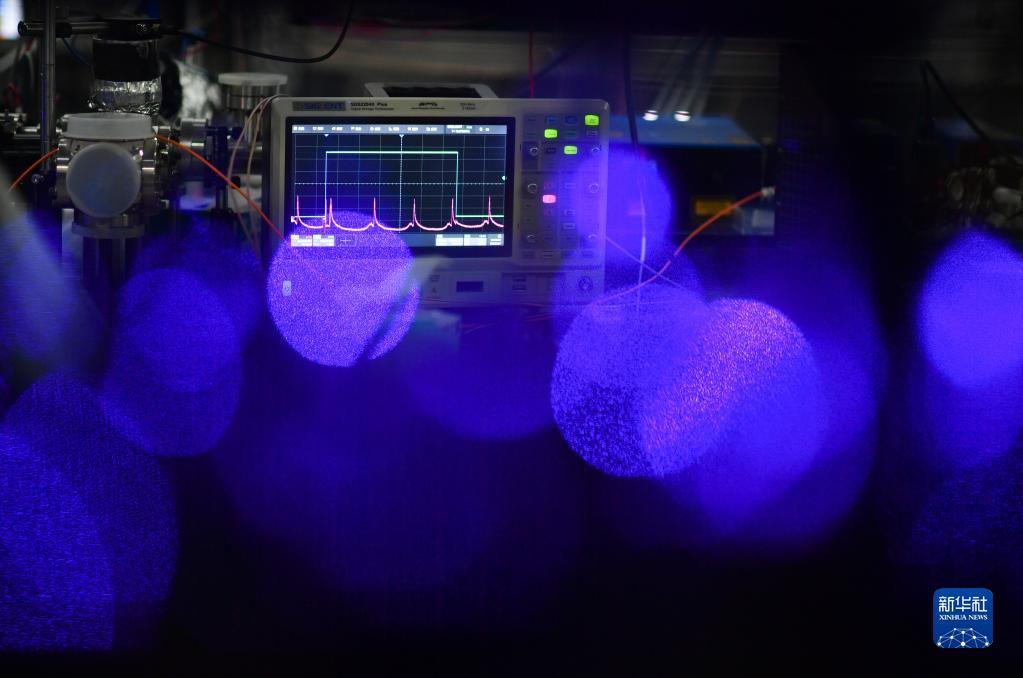 2月7日,在中國科學院國家授時中心空間鍶原子光鐘實驗室,測量儀器顯示相關(guān)實驗信號。新華社記者 張博文 攝