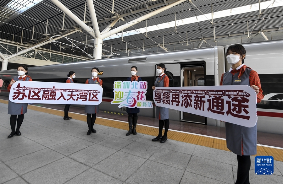 沐浴著虎年的陽光,開通不久的贛深高鐵上,一列列火車飛馳而過。