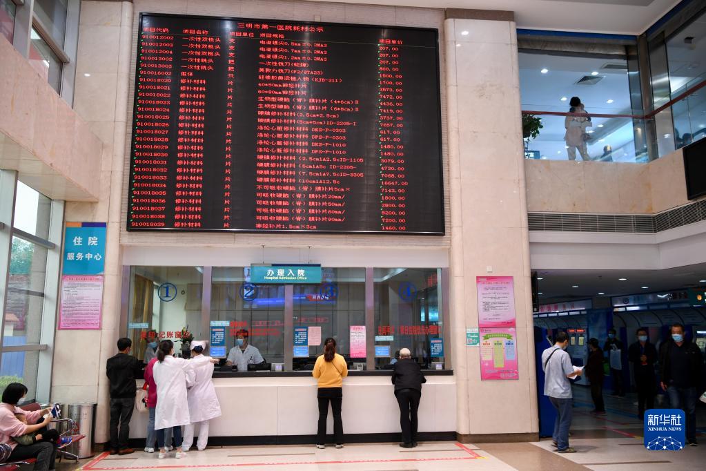 福建省三明市第一醫(yī)院輪播公示藥品耗材價(jià)格(2020年11月24日攝)。新華社記者 姜克紅 攝