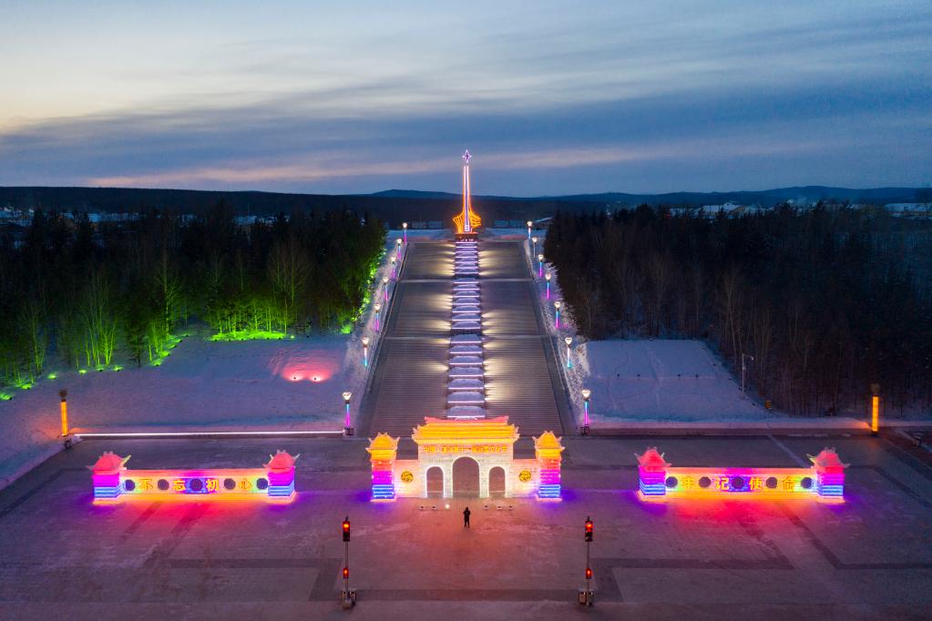 2021年1月8日拍攝的漠河市北極星廣場(chǎng)(無人機(jī)照片)。新華社記者 謝劍飛 攝