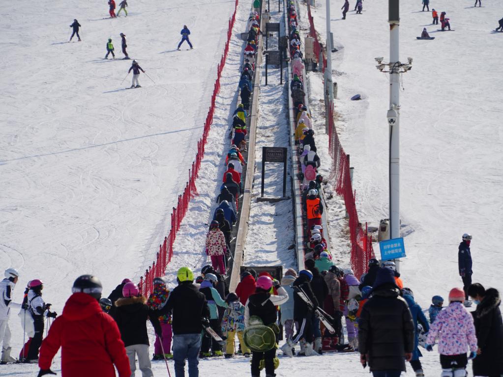 2022年2月17日,在沈陽怪坡國際滑雪場(chǎng),非雙休日時(shí)游客也很多。新華社記者 崔師豪攝