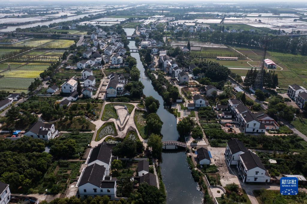 空中俯瞰浙江省嘉興市嘉善縣姚莊鎮(zhèn)橫港村(2021年7月12日攝,無人機照片)。近年來,嘉善縣建設高標準農(nóng)田14.8萬畝;同時建設產(chǎn)業(yè)幫扶聯(lián)合體、農(nóng)業(yè)社會化服務綜合體等,不斷拓寬農(nóng)民增收致富渠道,走出了一條城鄉(xiāng)深度融合推動共同富裕的實踐路子。新華社記者 徐昱 攝