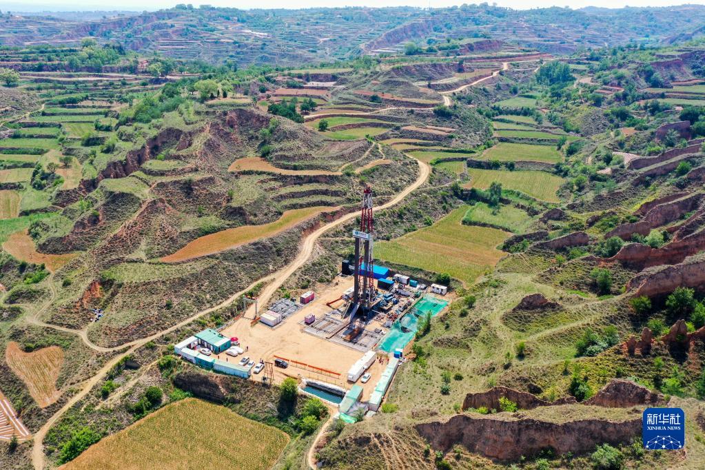這是華新燃?xì)馍轿魉{(lán)焰煤層氣集團(tuán)有限責(zé)任公司位于山西省長(zhǎng)治市武鄉(xiāng)縣的一處鉆井現(xiàn)場(chǎng)(2021年6月22日攝,無人機(jī)照片)。新華社記者 曹陽 攝