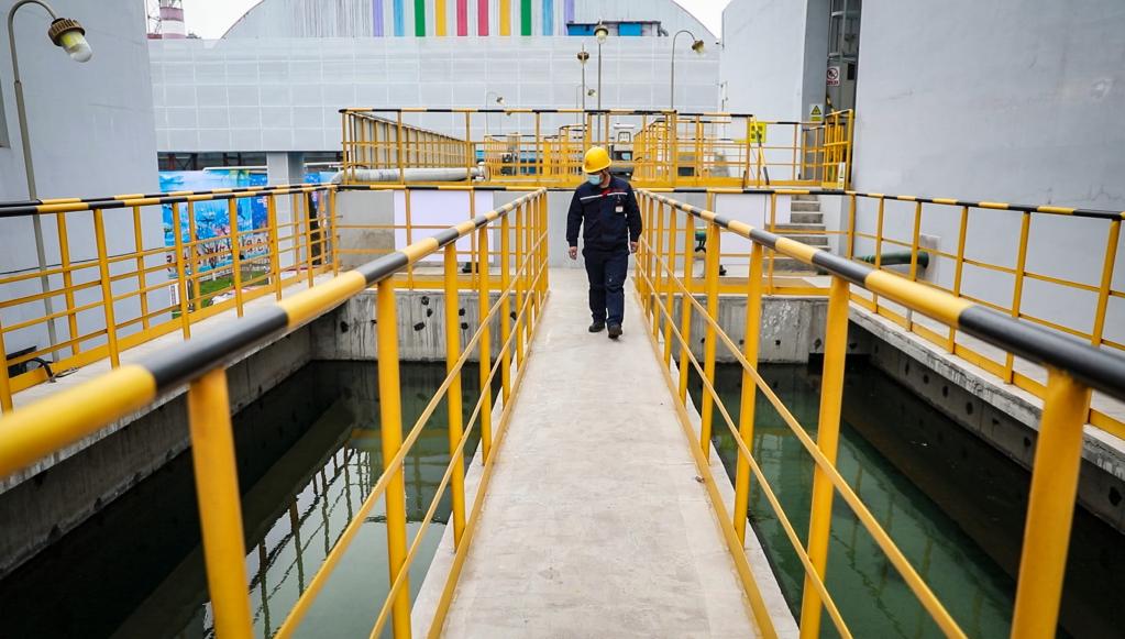 3月19日,工人在德龍鋼鐵公司水處理中心巡查。這里的生產(chǎn)廢水和生活污水經(jīng)處理后可循環(huán)使用,實(shí)現(xiàn)污廢水“零排放”。(陳雷攝)
