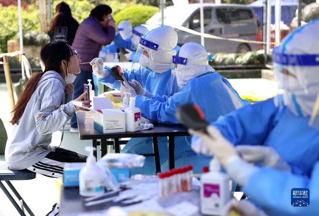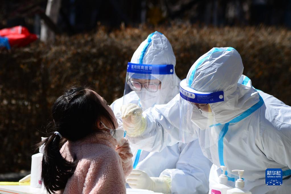 4月7日,在長春市南關(guān)區(qū)一處核酸檢測點(diǎn),醫(yī)務(wù)人員為居民進(jìn)行核酸采樣。新華社記者 張建 攝